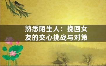 夫妻关系是人生中非常重要的一环,然而有时候小小的瑕疵也可以让两个人的关系出现变化,最终导致分离。倘若你的老婆有了“轨”,作为另一半的你肯定会异常失落。不过,要想挽回老婆,你必须付出努力。本文将教你如何挽回“轨老婆”的正确话术,让你重新赢回她的心。