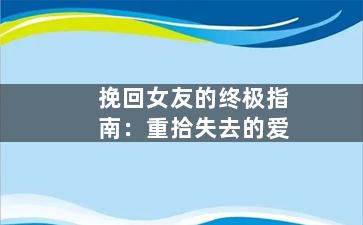希望通过本文的分享,您能更好地理解挽回女友的关键要素,并且在挽回的道路上获得更多的帮助和指引。最后,愿您能早日挽回失去的爱情,重建美好的恋情!