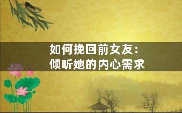 另外,多沟通是挽回前女友关系的重要一步。在与前女友交流时,你应该倾听她的想法和感受,而不是一味地表达自己的想法。双方坦诚相见,意见交流,可以建立起更好的沟通渠道,并逐渐增进对彼此的了解。通过有效的沟通,能够更好地解决矛盾,促进关系的和睦。