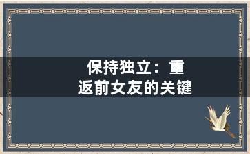 关键词:重新获得前女友的地位,挽留前女友,重建关系。