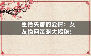 挽回女友的技巧和策略是许多男性朋友们关心的话题。分手后,挽回女友并不容易,但也并非不可能。成功挽回女友需要一定的技巧和策略,更需要付出真诚的努力和改变自己的行为。本文将针对这一话题,分享一些成功挽回女友的技巧和策略。
