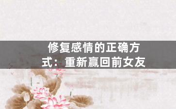本篇文章旨在探讨如何科学地挽回前女友,通过深入的分析和有力的建议,帮助读者重新赢得她的心。我们相信,通过正确的方法和态度,每一段失去的感情都有可能得到挽回。