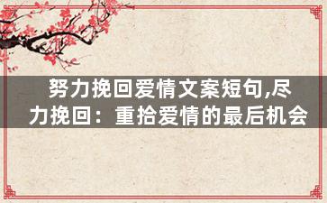 2、其次,要保持理智,千万不要一味的放弃,即使有时候看起来挽回没有什么效果,也要坚持下去,不要过于轻易的放弃,只有坚持到,才可能有好的结果。